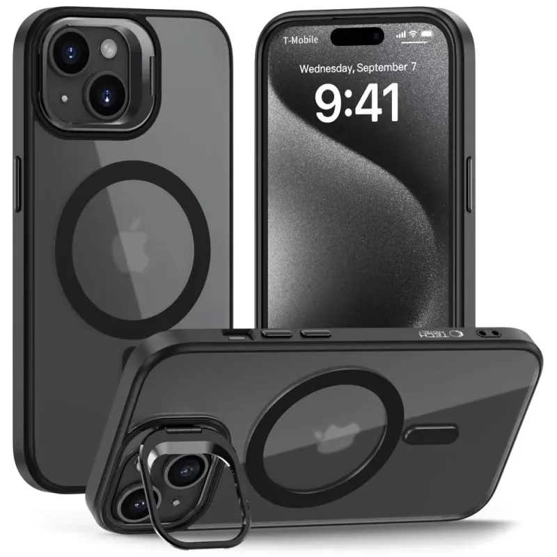 iPhone 15 matte/ black, tugiandlaga MagSafe silicone case