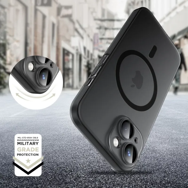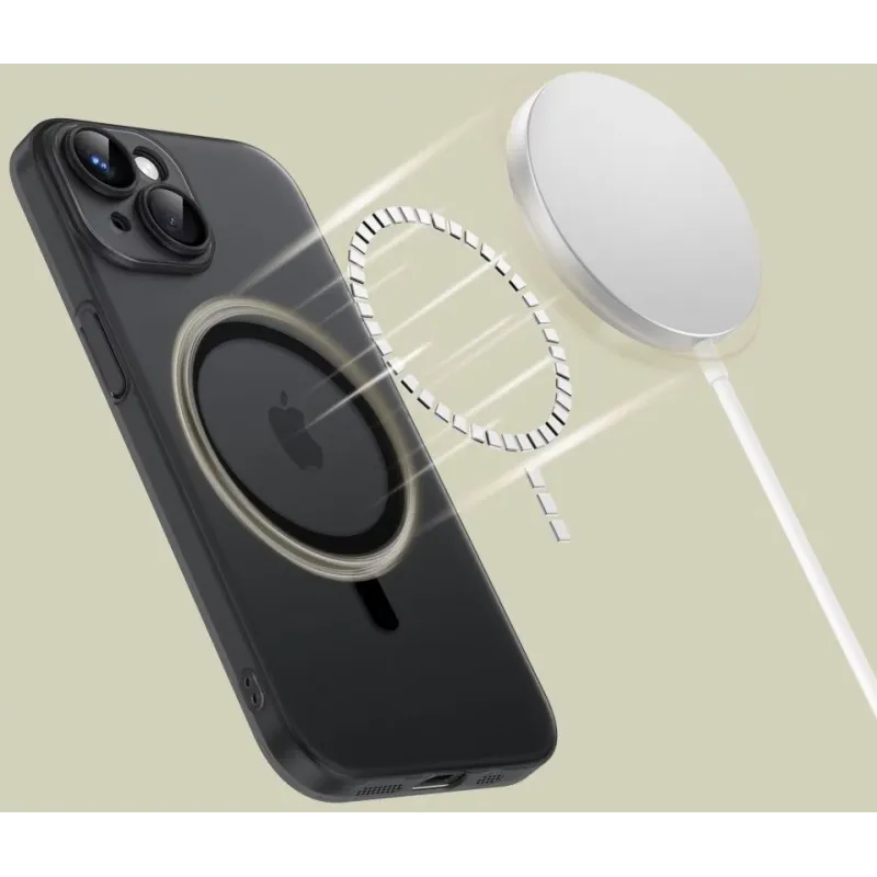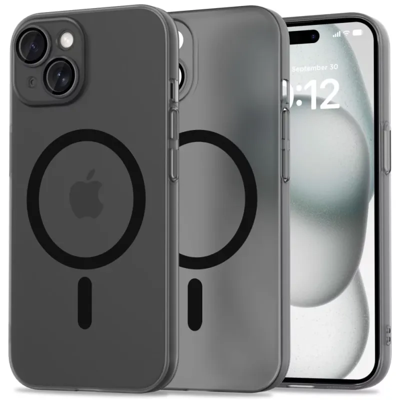 iPhone 15 Matt/must Tech-Protect MagSafe silikoonümbris.