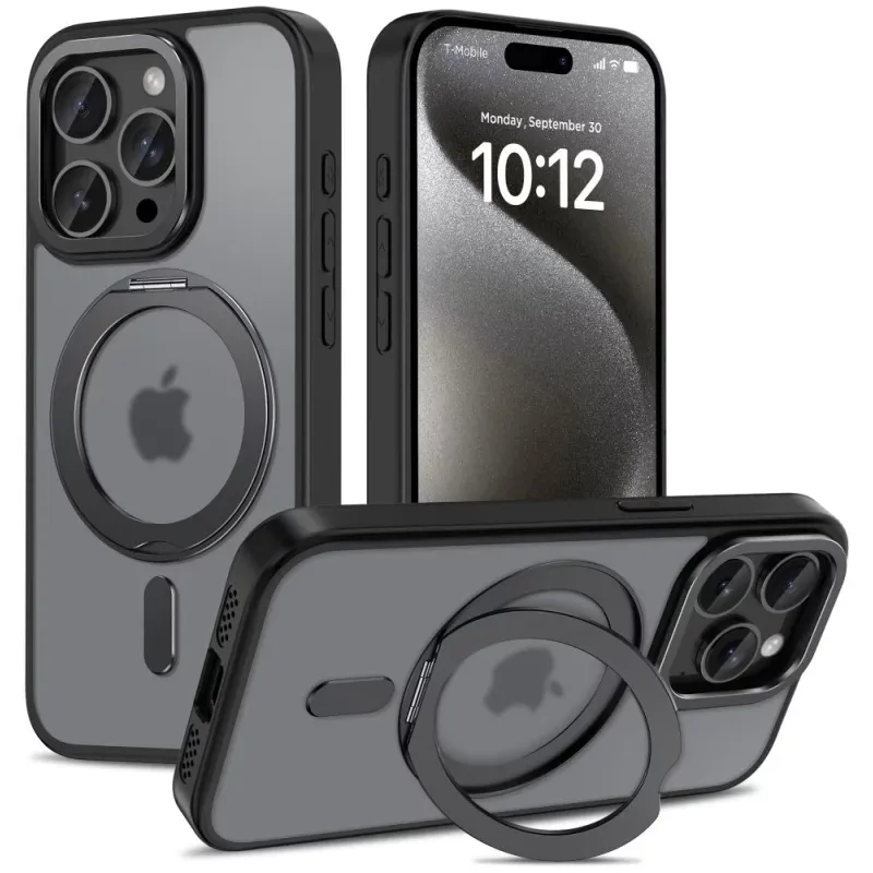 iPhone 15 Pro must matt (tugijalaga) MagRing MagSafe ümbris.